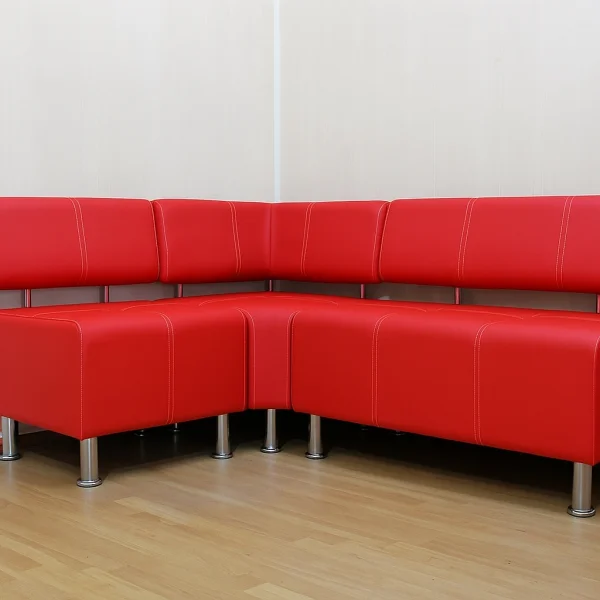 Кутовий диван Джокер у червоному кольорі – ідеальне поєднання яскравого дизайну та практичності. Він підходить для дому, офісу чи приймальні, має сучасні лаконічні форми та комфортне сидіння. Завдяки модульній конструкції можна легко створювати різні конфігурації, підбираючи розміри відповідно до простору та кількості посадкових місць.